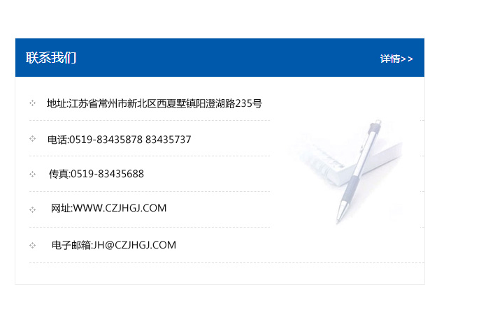 傳真:0519-83435688    郵編:213135    網址:WWW.czjhgj_com.zydlfj.com    電子郵箱:JH@czjhgj_com.zydlfj.com